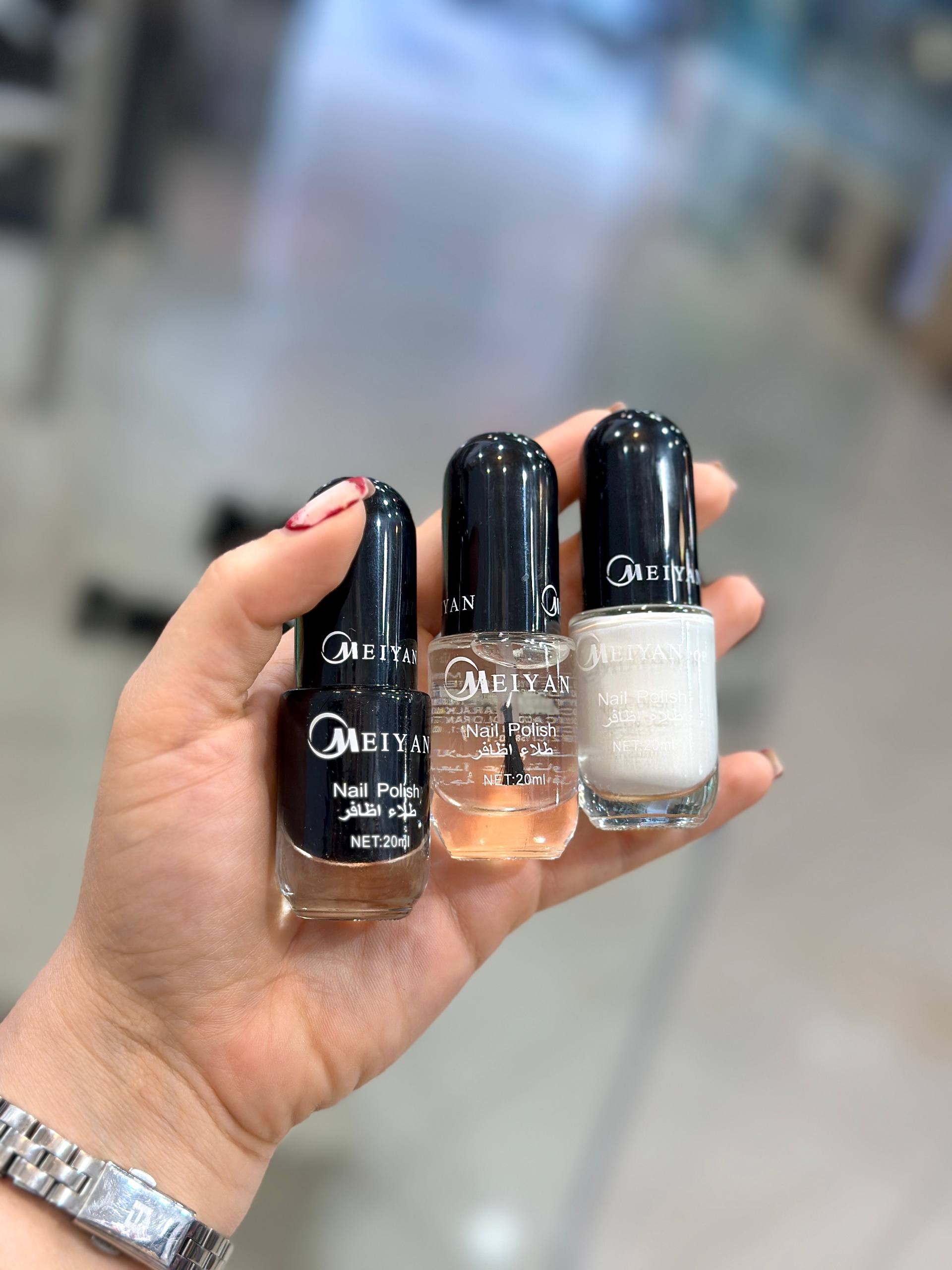 🔹 سفید: ساده، شیک و همیشه مدرن. 🔹برق ناخن: درخشش طبیعی برای زیبایی همیشگی. 🔹مشکی: انتخابی جسورانه و لوکس برای استایل خاص.