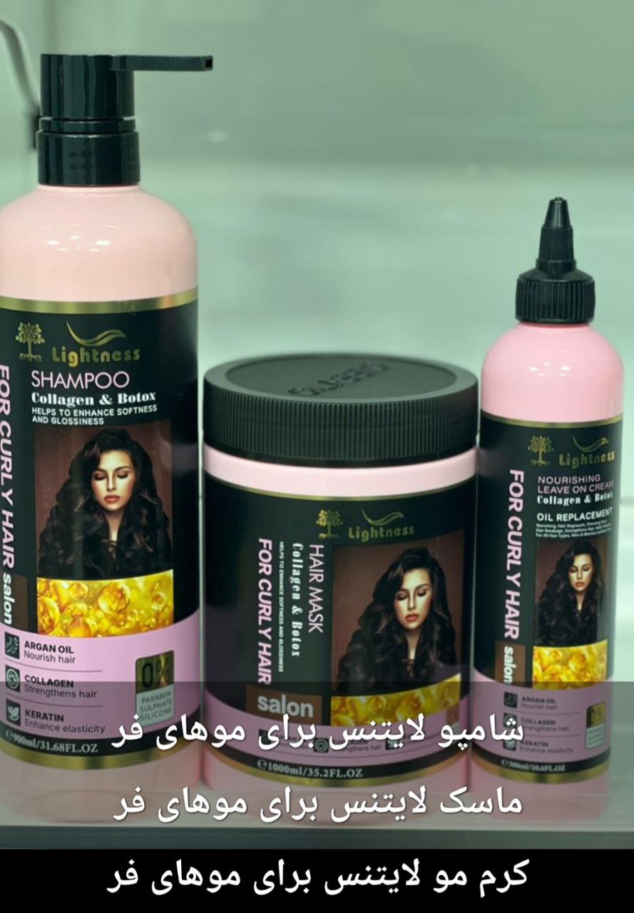 - شامپو موهای فر لایتنس حاوی کلاژن و بوتاکس با حجم 900 میلی لیتر