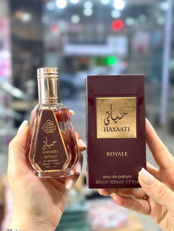 ادکلن 50 میل فراگرنس ورد مدل حیاتی رویال (Fragrance World Hayaati Royale)، یک ادو پرفیوم باکیفیت و جذاب از برند معتبر فراگرنس ورد است که رایحهای مشابه عطر پرفروش عربی ارض الزعفران موصوف (Mousuf) دارد.
